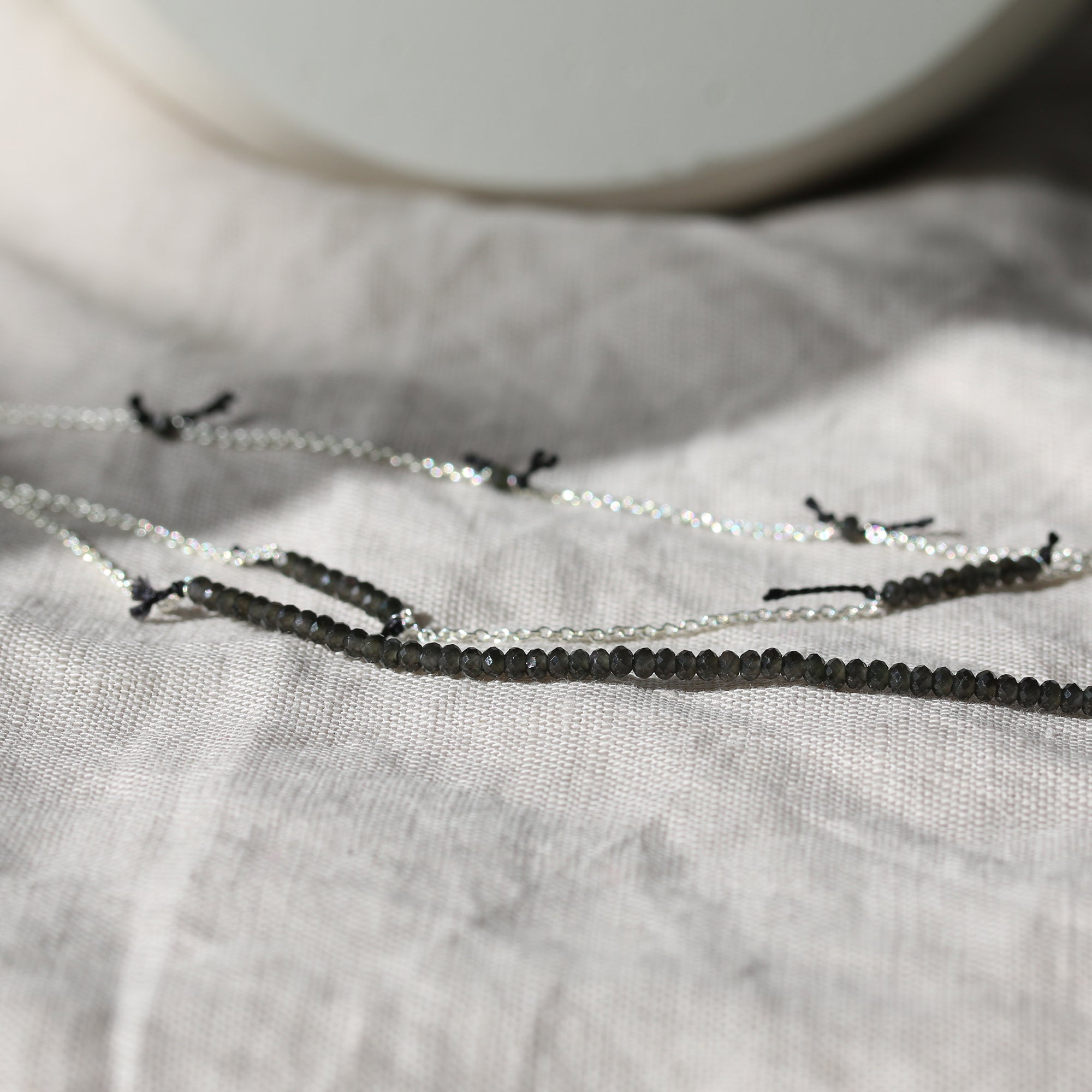 The Bonbon Gemstone Necklace is like a string of tiny, sparkling sweets — each petite gemstone a little burst of color and light. Hand-selected for their natural glow and strung with care on silk cord, the knots connecting each stone to the chain create the delightful illusion of tiny bonbons dancing along your neckline. The Bonbon adds a cheerful pop of color to your everyday style and layers effortlessly with your favorite pieces.