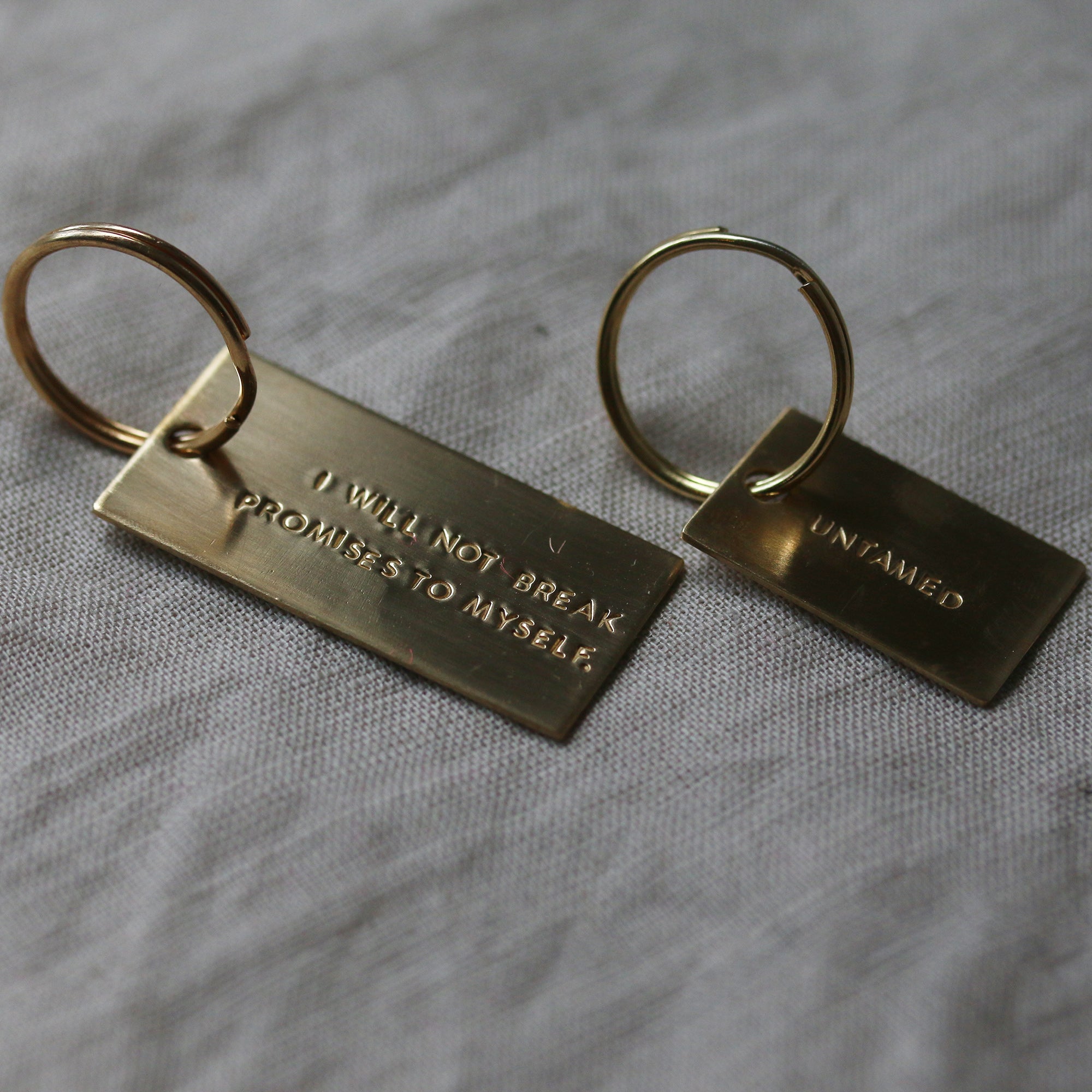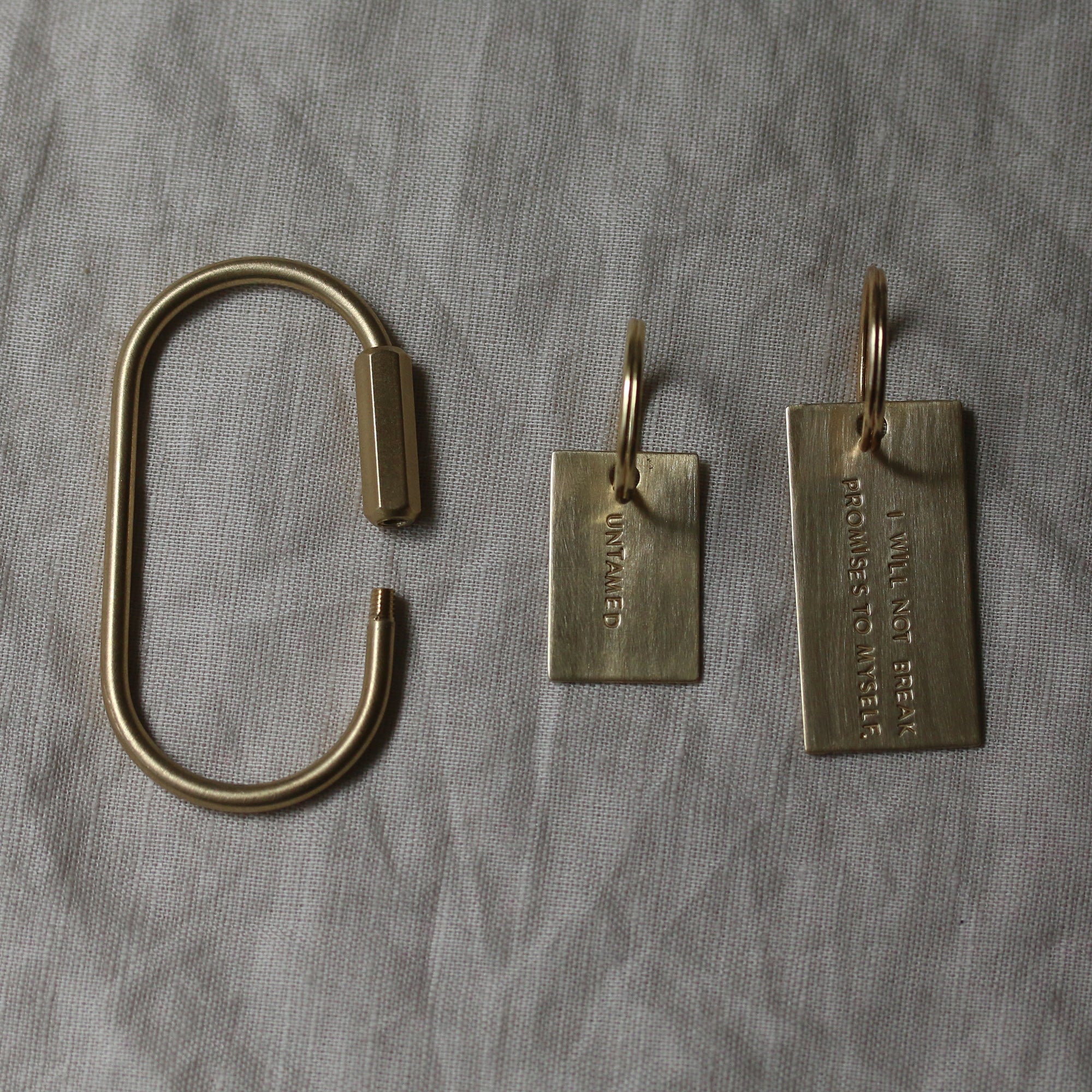 Each brass keychain is hand-fabricated and hand-stamped. Designed for everyday use, it features a solid brass tag paired with a sturdy key ring or add a locking carabiner clip—made to go wherever you go.